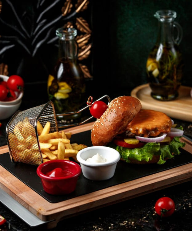 Green salad//Tomatoes//Cucumber//Radish//pomegranate// Chickpeas//Greek Yogurt// Mint dressing