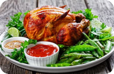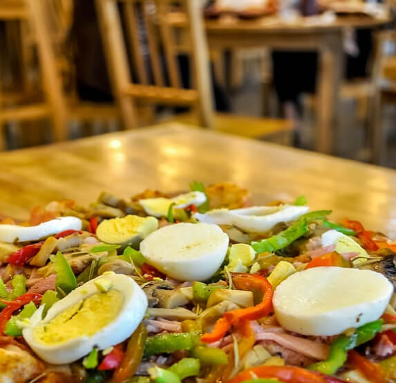Green salad//Tomatoes//cucumber//raddish//pommegranate seeds//Chickpeas//Button mushroom//Tahini salad dressing